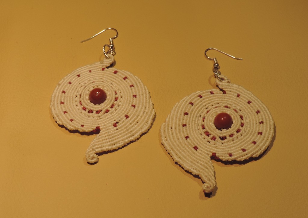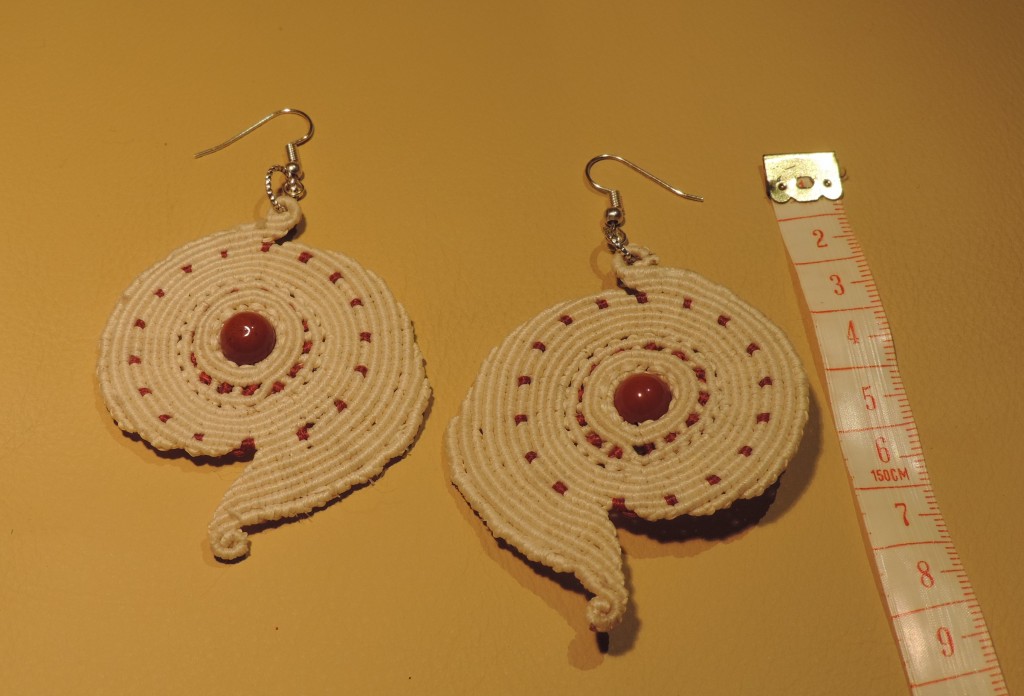 - v uhana sta vdelani po ena okrasna kroglica iz poldragega kamna - rdeč jaspis,