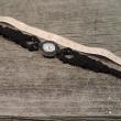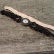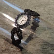 - v črn vozljan pas je vdelana srebrna starinska ura,