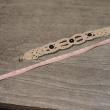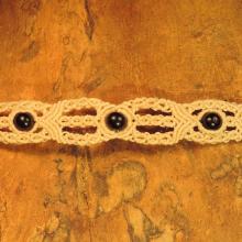 Ročna izdelava, z mikro makrame tehniko vozlanja. Material: voskana ploščata vrvica, širine 1 mm, bež barve.