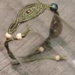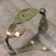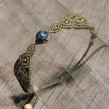 Ročna izdelava, z mikro makrame tehniko vozlanja. Material: voskana ploščata vrvica, širine 1 mm, zelene barve.